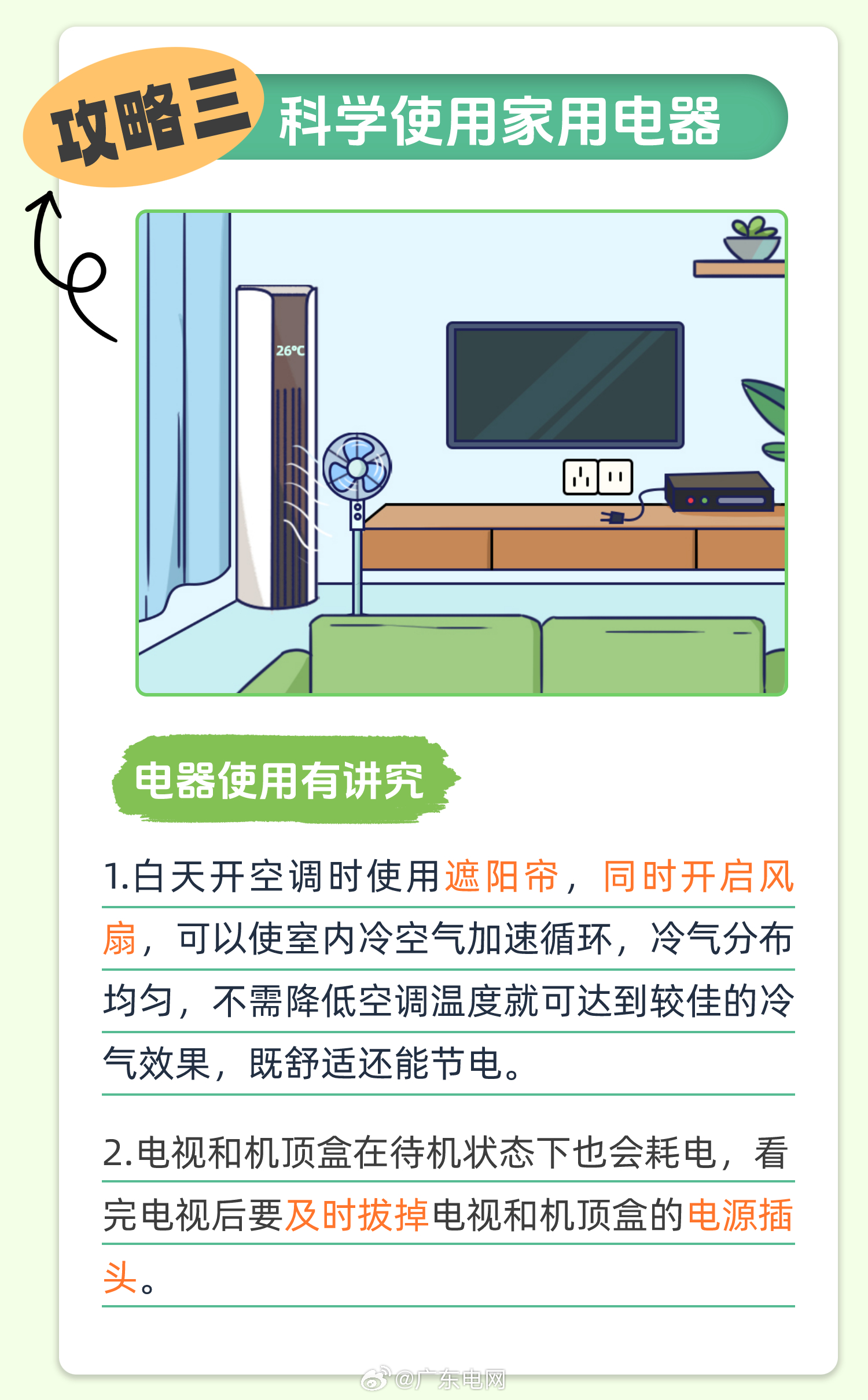 2、合理使用電器:避免長時間待機,盡量在使用電器時降低其功率,調(diào)整空調(diào)溫度時,不要設置過低或過高,以減少電力消耗。