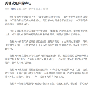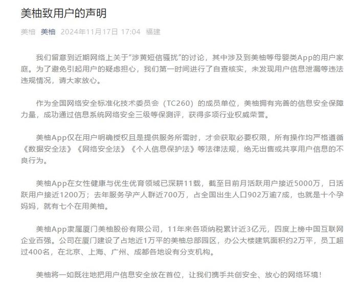 針對涉黃短信騷擾事件,美柚方面迅速做出了回應(yīng),他們表示,已經(jīng)注意到了用戶的反饋,對此深感抱歉,并承諾將采取一系列措施來維護(hù)用戶的合法權(quán)益。